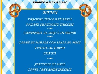 alle ore 12.30 è previsto il pranzo tipico bavarese a menu fisso (prenotazione obbligatoria presso Alimentari Anna, tel. 338 8921152), con un ricco menù che comprende tagliere bavarese, canederli, carré di maiale con salsa di mele, patate, crauti e frittelle di mele, bevande incluse.