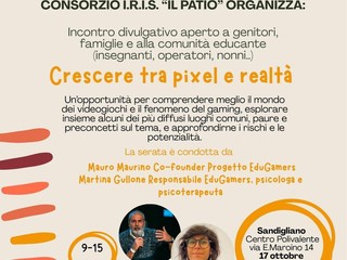 Sarà un momento di approfondimento dedicato alla comprensione del fenomeno dei videogiochi e del gaming, volto a superare pregiudizi e paure diffuse, riflettendo insieme su rischi e potenzialità educative.