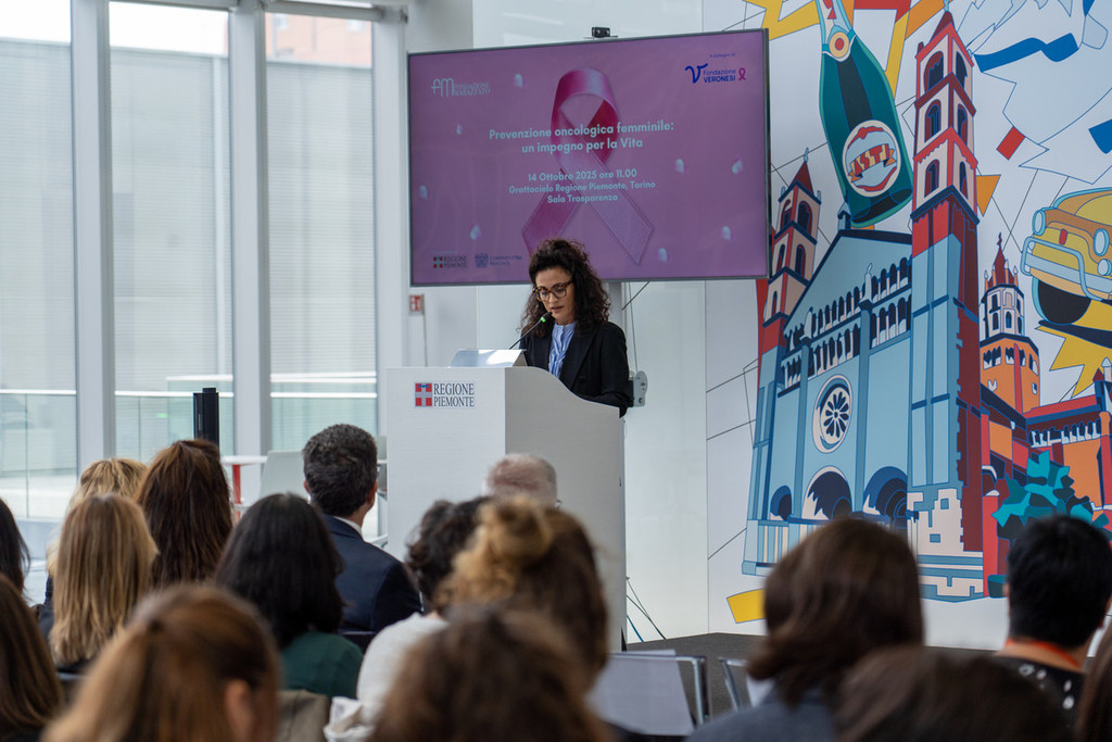 • OSPITATO NEL GRATTACIELO DELLA REGIONE PIEMONTE, L’EVENTO HA AVUTO COME MOMENTO CENTRALE L’INTERVENTO SULLE TEMATICHE DELLA RICERCA DELLA PREVENZIONE DEI TUMORI FEMMINILI DI CHIARA SEGRÈ, RESPONSABILE SUPERVISIONE SCIENTIFICA DI FONDAZIONE UMBERTO VERONESI ETS, OLTRE A QUELLI DEI RAPPRESENTANTI DELLA REGIONE E DELLA PINK AMBASSADOR DI FONDAZIONE VERONESI ENZA CASTELLANO