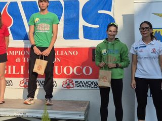 A Savona si è disputata la IX° edizione del Triathlon Sprint di Savona, ormai un classico del calendario italiano, in una bellissima giornata di sole, con una run molto spettacolare con un doppio passaggio all’interno della Fortezza di Priamar. Moltissimi, ben 10, gli atleti in verde-turchese e oro a colorare la gara savonese, al maschile ancora una prova strepitosa di Giacomo Frassati, 5° assoluto e 1° tra gli YB, 6° posto ed oro tra gli S1 per Enea Demarchi con una gran bike, ottime performances per Nicolò Fontana, 9° assoluto ed oro S2 ed Edoardo Mazzucco, bronzo S2, ancora un podio per l’instancabile Andrea Manzotti, argento tra gli M1. Piazzamenti molto positivi per Filippo Gai, 5° tra gli Ju e Gabriele Verdoja, 8° tra gli M1.