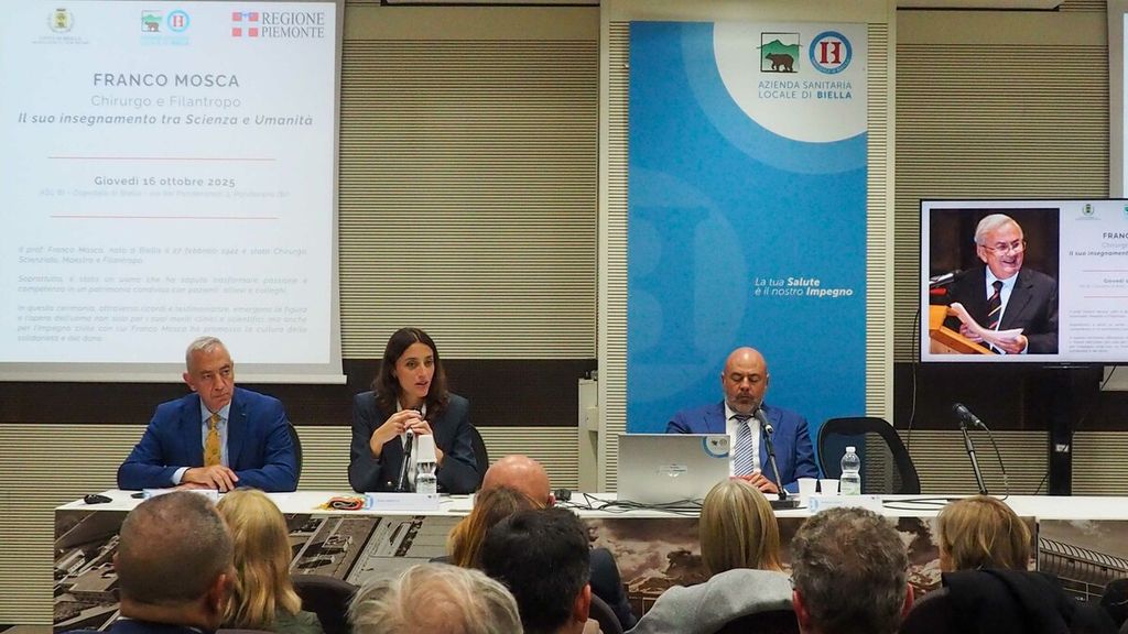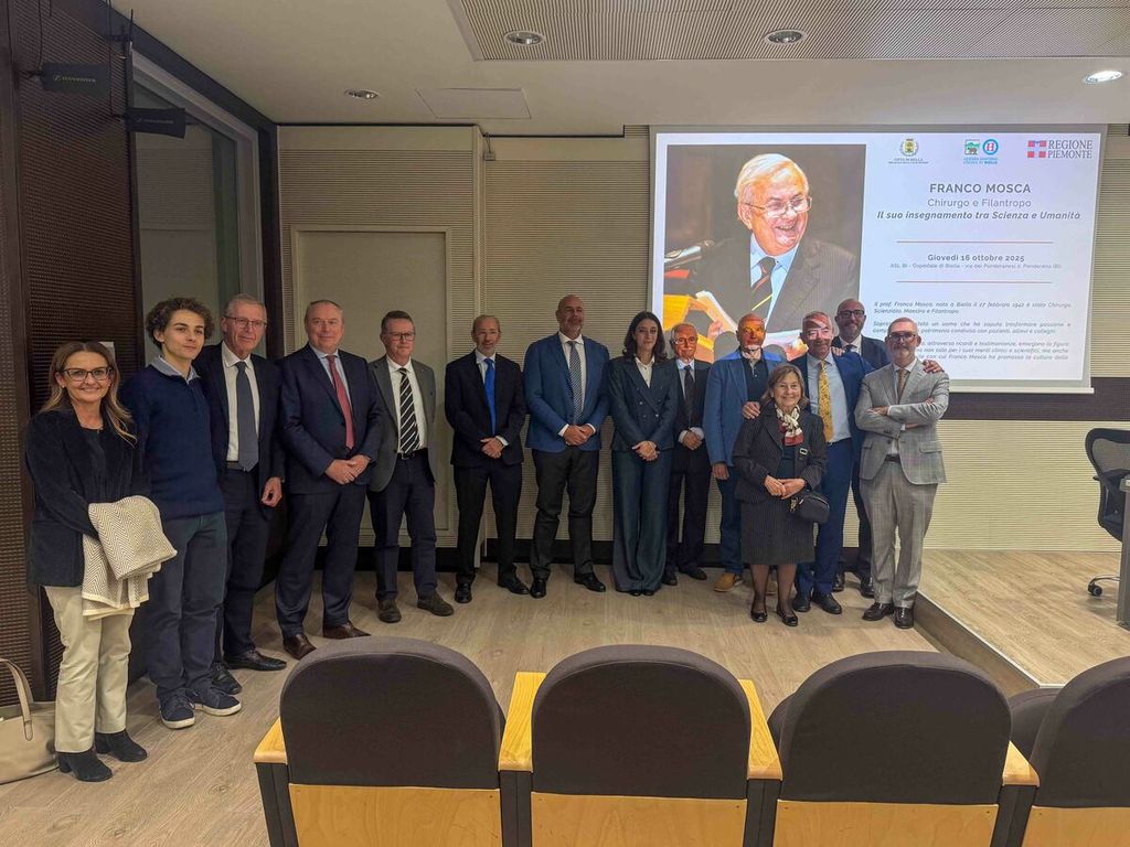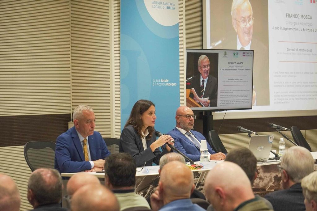 Giovedì 16 ottobre 2025 presso l’Ospedale di Biella si è tenuto l’evento dedicato a “Franco Mosca, chirurgo e filantropo – Il suo insegnamento tra Scienza e Umanità”, promosso dal Comune di Biella in collaborazione con l’Azienda Sanitaria Locale BI. L’evento nasce da una proposta del Vicesindaco di Biella, Sara Gentile, con l’intento di ricordare il prof. Mosca insieme all’Azienda Sanitaria, in riferimento alla statura umana e professionale del chirurgo biellese che è stato nel corso della sua carriera anche maestro e filantropo e portatore di ideali e valori che costituiscono tuttora l’orizzonte di riferimento per chi opera oggi nel contesto della sanità.