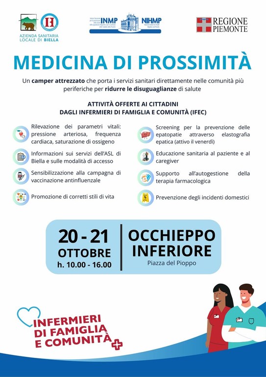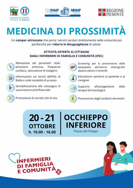 Il progetto nasce dalla collaborazione tra Regione Piemonte, ASL di Biella e INMP, Ente vigilato dal Ministero della Salute che per la prima volta in Italia supporta un intervento strutturato di Medicina di Prossimità dedicato alle Cure Primarie.