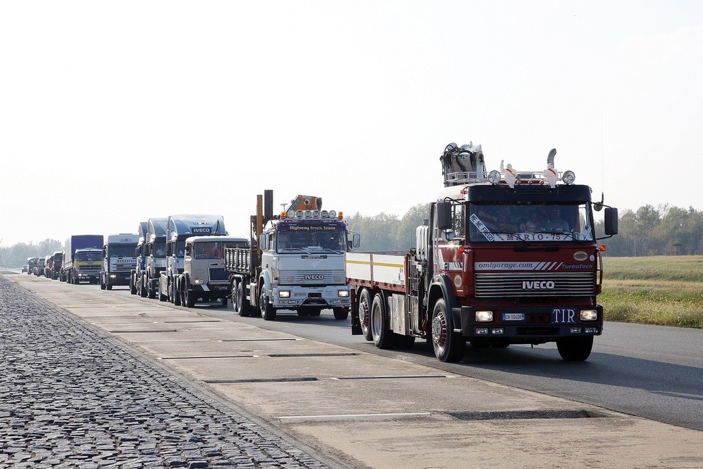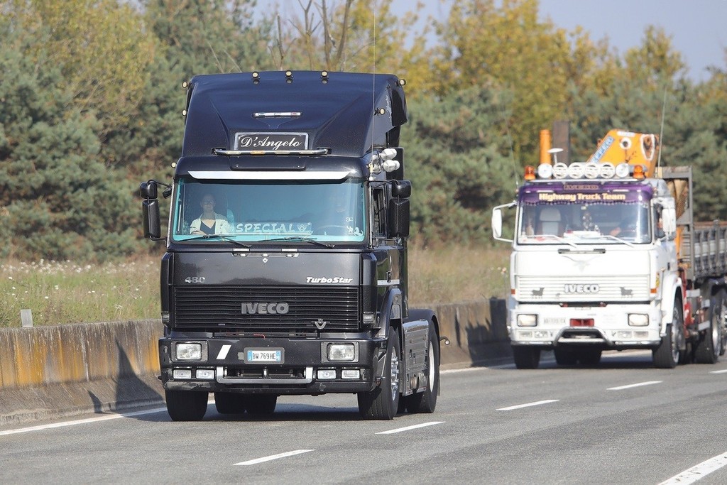 Il vero momento clou della giornata è però arrivato verso le 14:30, quando uno a uno i circa 20 TurboStar intervenuti al raduno si sono messi in colonna per partire alla volta della pista di Balocco (VC), dove li aspettava un giro del celebre circuito “proving ground” dedicato ai mezzi pesanti. Con in testa il moderno IVECO S-Way nella speciale livrea dedicata al TurboStar, guidato da Ezio Camusso, e seguito da alcuni mezzi della Collezione Marazzato con a bordo stampa e visitatori, la carovana si è mossa poi da Balocco verso Vercelli per una sfilata nelle vie cittadine per fermarsi nel parcheggio della Maxi Discoteca il Globo di Borgo Vercelli.