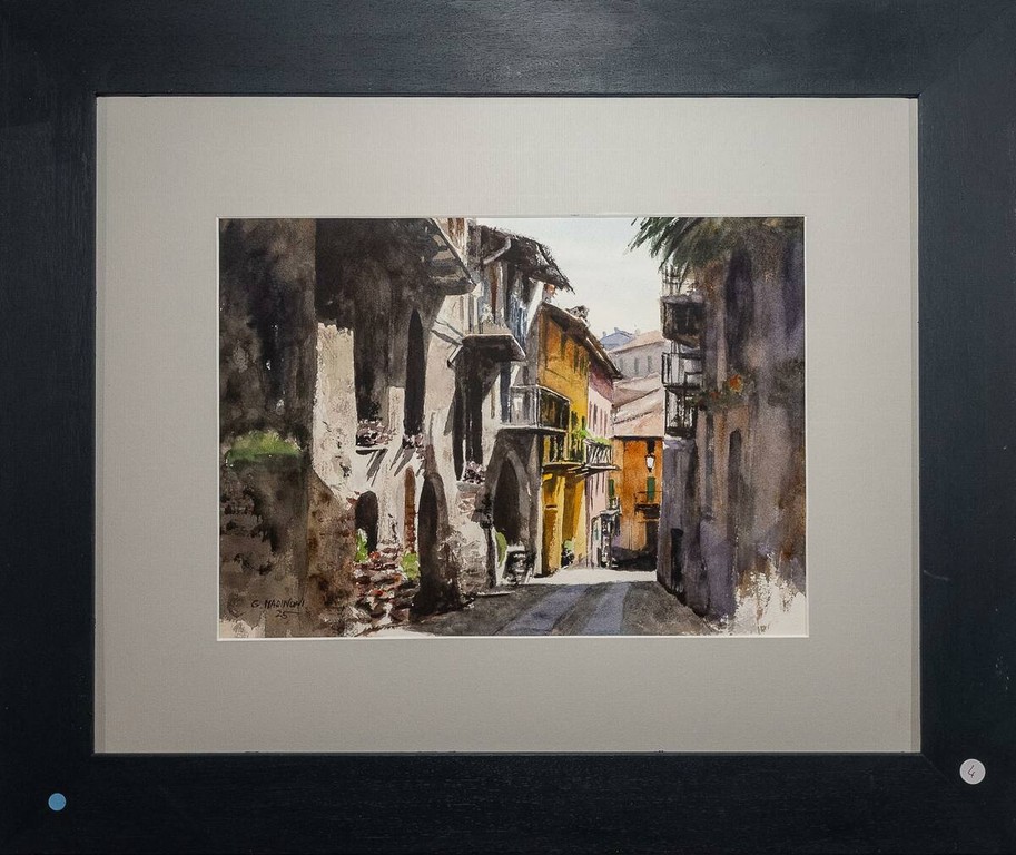 Le opere in mostra a Masserano raccontano il borgo attraverso una pittura di luce e atmosfera: scorci, tetti, vie acciottolate e facciate dialogano con l’occhio dell’artista, che restituisce la poesia del quotidiano e il silenzio delle pietre antiche. Marinoni porta avanti la tradizione pittorica biellese con uno sguardo contemporaneo, attento ai valori della memoria e dell’identità del territorio.