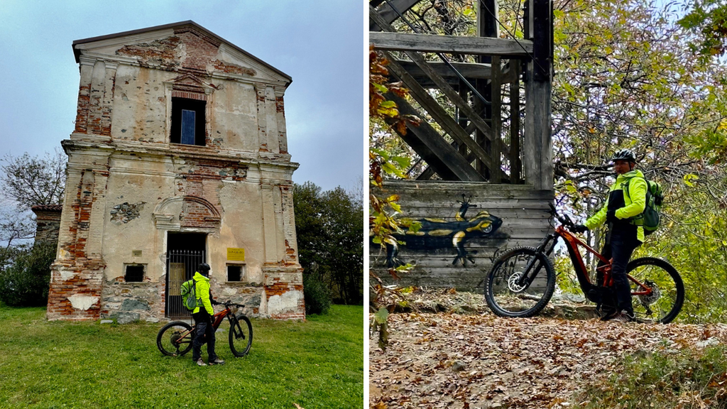 Lungo il percorso si incontrano vari massi erratici, tra cui il Roch dal Basu. In questa occasione, l’itinerario abbandona la dorsale alla chiesetta di San Grato, a Zimone, per addentrarsi nuovamente nel sottobosco: è il segmento più impegnativo, su terreno pietroso e irregolare, che conduce al Parco Naturale della Bessa. L’attraversamento della Bessa è un vero salto nel tempo: i cumuli di pietre modellati dalle generazioni di Victimuli, costretti dai Romani alla ricerca dell’oro con i materiali trasportati dal torrente Elvo, conferiscono al paesaggio un carattere unico. Il tracciato tra i cumuli è affascinante ma richiede attenzione: il fondo è molto sconnesso e le pietre, mobili e scivolose anche da asciutte, impongono una guida prudente.