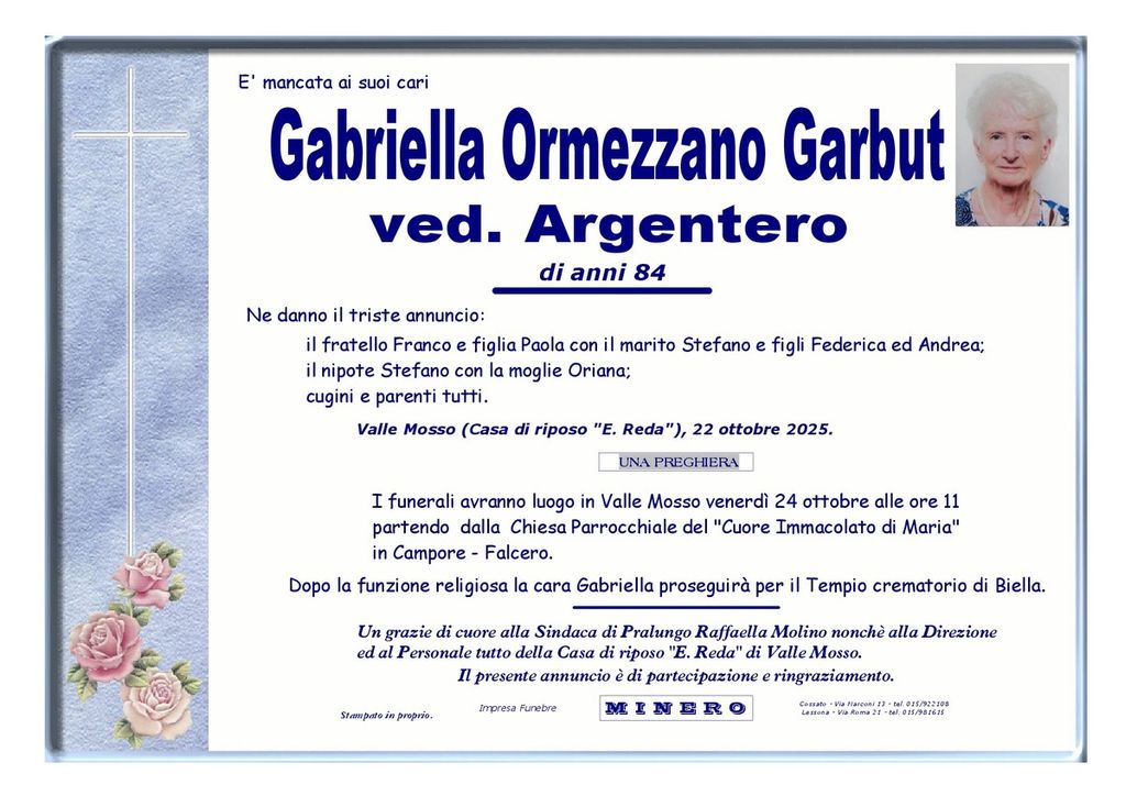 Gabriella Ormezzano Garbut, ved. Argentero