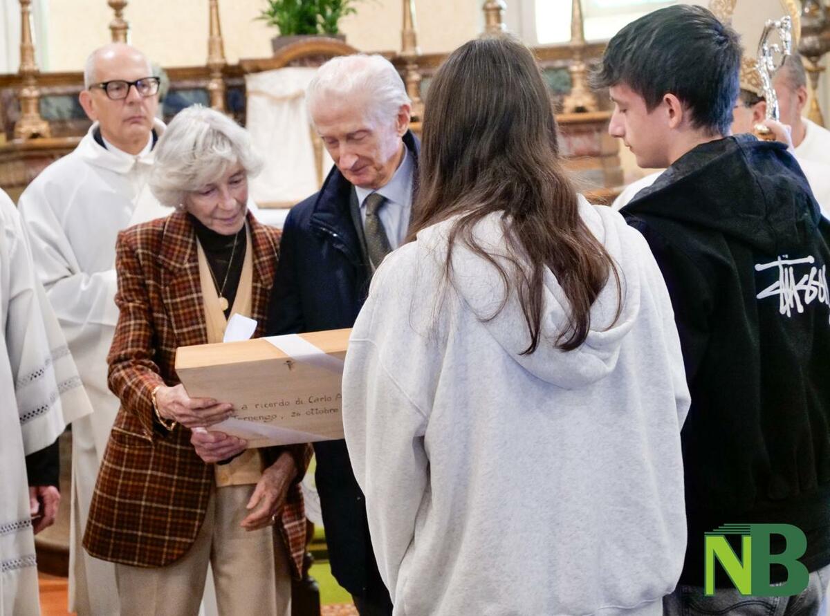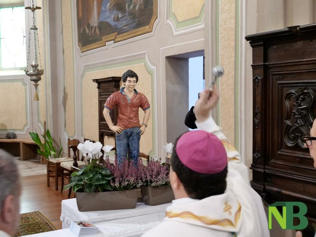 Ad oltre un mese dalla canonizzazione avvenuta il 7 settembre in Vaticano, la celebrazione si è trasformata in un momento di fede, memoria e gratitudine collettiva. Durante la funzione è stata benedetta la nuova statua lignea raffigurante San Carlo, scolpita e donata dalla popolazione di Ternengo. L’opera, realizzata da uno scultore locale, è la stessa mano che ha inciso anche il bassorilievo raffigurante la chiesa del paese, consegnato ai nonni di Carlo Acutis come segno di affetto e riconoscenza da parte della comunità.