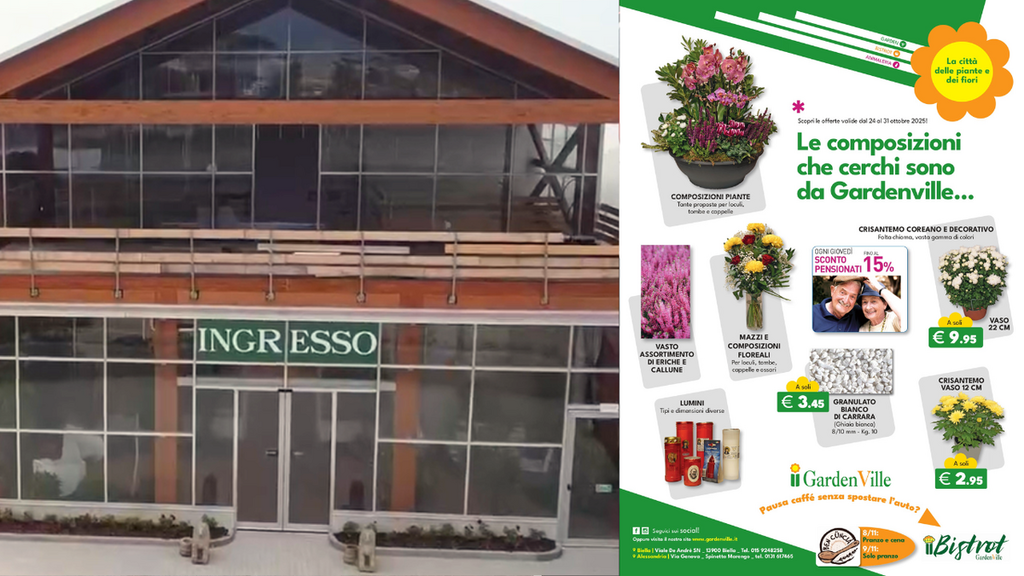 Gardenville “la città delle piante e dei fiori” è anche un luogo accogliente dove prendersi una pausa: nel punto vendita di Biella è disponibile un comodo bistrot con area caffè, perfetto per rilassarsi senza spostare l’auto.