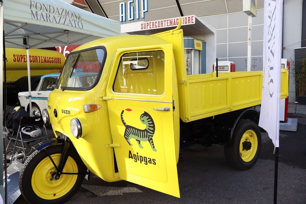 Lo stesso è stato nuovamente possibile fare nell’area esterna al padiglione 26, con l’ormai nota ma non per questo meno ammirata installazione che affianca alla stazione di servizio Agip il Fiat 682 N2 Supercortemaggiore e il motocarro Guzzi Ercole Agip Gas (questa volta accompagnati da una contemporanea Fiat 1100 carrozzata Fissore). Di nuovo, oltre a salire sui mezzi, i visitatori hanno potuto fare l’esperienza della visita e guida “virtuale”, tramite visori che li hanno trasportati in ambientazioni simulate, direttamente a bordo.