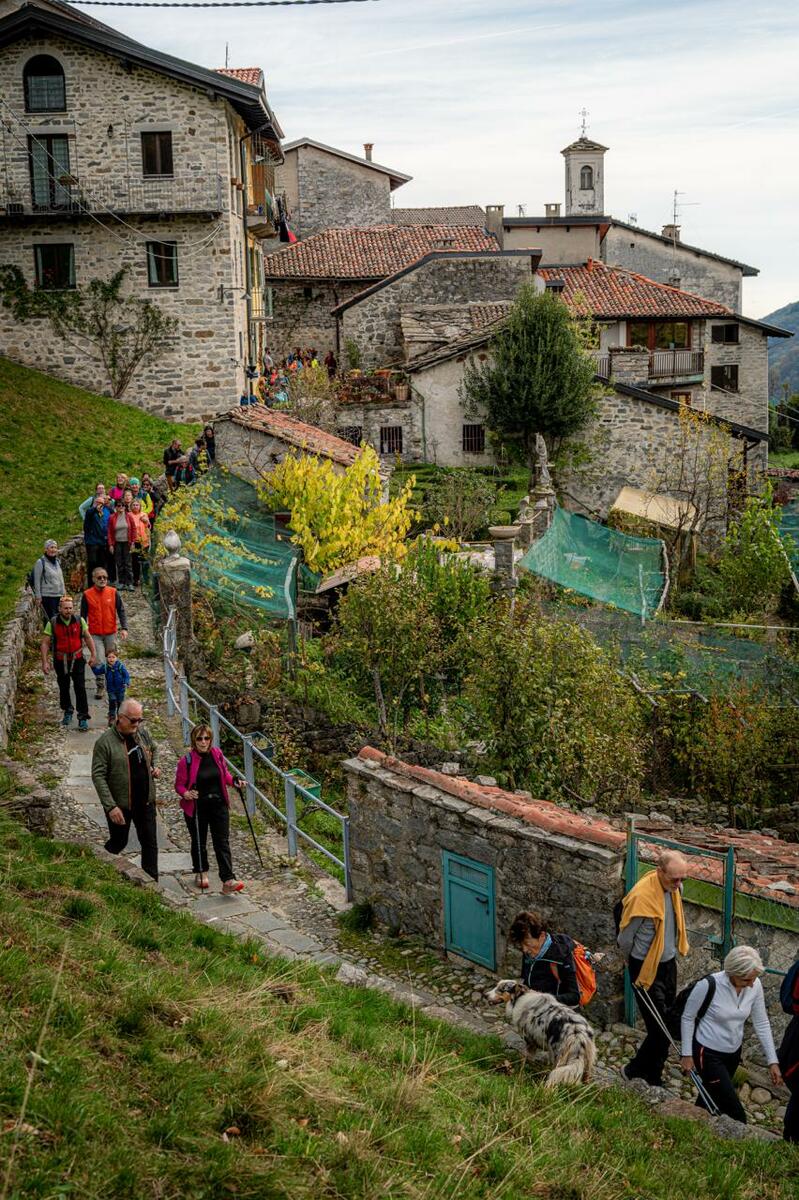 Il gruppo ha poi proseguito lungo il traverso verso Piaro, scendendo per la suggestiva scalinata acciottolata che, con le sue ampie curve e scorci panoramici, ha riportato i camminatori al punto di partenza.