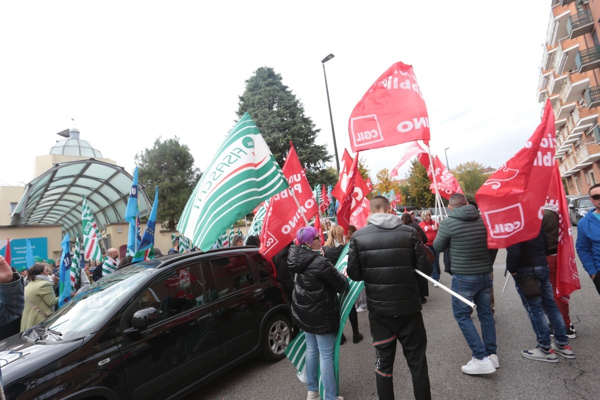 Presidio davanti all’Rsa Valgioie di Torino indetto da Cgil, Cisl e Uil contro il contratto collettivo Anaste, giudicato “peggiorativo” e sottoscritto – secondo i sindacati – da sigle non rappresentative.