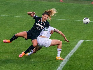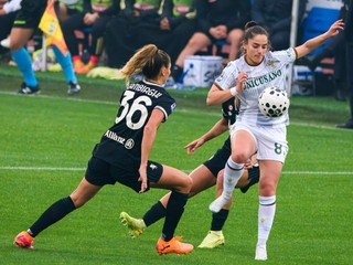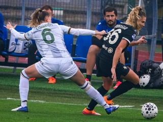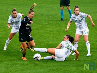 La squadra bianconera parte con grande intensità, controllando il possesso e cercando varchi nella difesa compatta delle rossoverdi. Al 16’ la prima occasione arriva da palla inattiva: Carbonell prova a sorprendere Ciccioli con una punizione dalla distanza, ma il suo tiro termina a lato. Al 30’ è Bonansea a sfiorare il vantaggio: Pinto la serve con un pallone morbido, ma l’attaccante non riesce per un soffio nella deviazione decisiva. La Juve aumenta la pressione e quattro minuti più tardi sfiora ancora il gol con Beccari, anticipata in extremis da Erzen a pochi passi dalla porta dopo un ottimo cross di Krumbiegel. Sessanta secondi dopo, la stessa Beccari ha un’occasione d’oro: il portiere ospite sbaglia l’uscita su un nuovo traversone di Krumbiegel, ma l’attaccante bianconera non riesce a inquadrare lo specchio della porta. La Juve continua a spingere e al 44’ Cambiaghi si rende pericolosa di testa su cross di Walti, mandando di poco sopra la traversa. È il preludio al gol che arriva un minuto più tardi, nel recupero del primo tempo: Carbonell pennella un cross perfetto per Cambiaghi, che anticipa Ciccioli e insacca di testa per l’1-0.