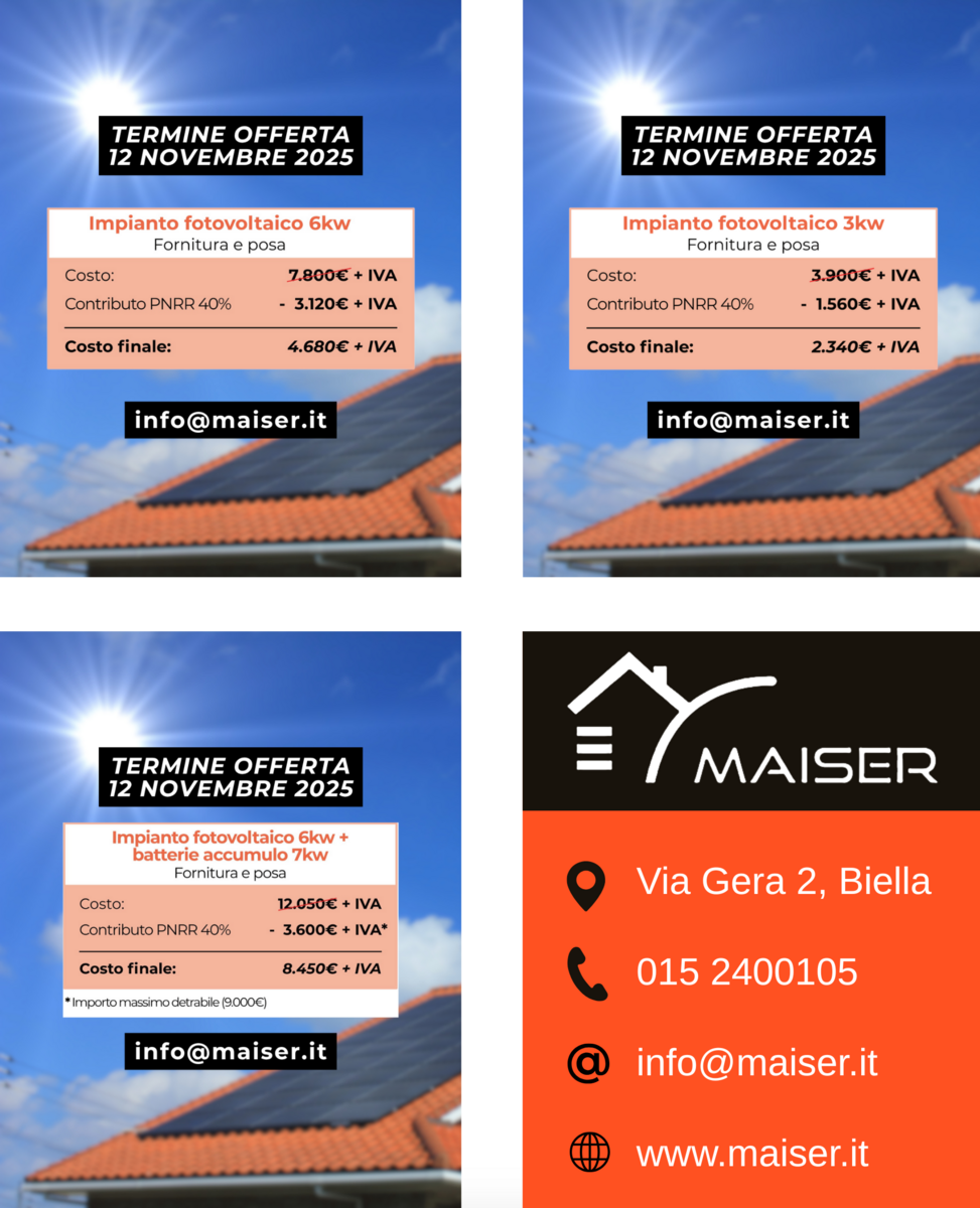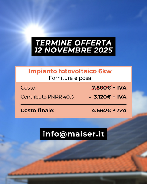 Hai tempo fino al 30 novembre per accedere al contributo PNRR del 40% e approfittare dei prezzi agevolati previsti dal progetto Green Energy di Maiser.