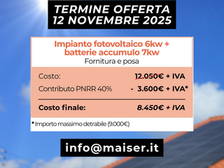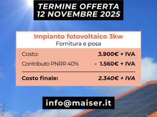 Hai tempo fino al 30 novembre per accedere al contributo PNRR del 40% e approfittare dei prezzi agevolati previsti dal progetto Green Energy di Maiser.