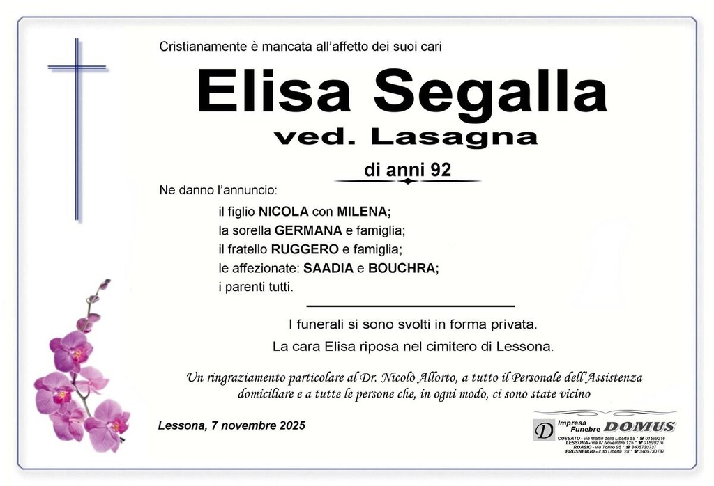 Elisa Segalla, ved. Lasagna
