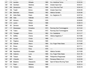 Km 19 femminile: 1° Bertone Catherine (Atletica Sandro Calvesi) 01:25:58, 2° Guenzani Silvia (G.s. Fulgor Prato Sesia) 01:27:32, 3° Lanza Beatrice (Pietro Micca Biella Running) 01:28:28, 4° Capuano Giada 01:36:16, 5° Moia Monica (A.s.d. Bognanco) 01:37:52, 6° Marovino Gloria (Sport & Natura Running Team) 01:39:25, 7° Vigna Ton Michela (Avis Ivrea) 01:44:56, 8° Orlarej Rosa (Podistica Dora Baltea) 01:46:06, 9° Huynh Thi Mai Linh 01:48:46, 10° Barchietto Francesca 01:52:20, 11° Casasola Raffaella 01:52:29, 12° Trinchero Michela 01:52:34, 13° Rinolfi Daria 01:54:01, 14° Muraro Maria (G.s. Fulgor Prato Sesia) 01:54:34, 15° Falla Silvia (Atletica Candelo) 01:54:37, 16° Stroe Ioana Andreea (Unione Giovane Biella) 01:56:20, 17° Martinotti Clara (A.s.d. U.s. Sanfront Atletica ? ) 01:56:28, 18° Mussetta Sara 01:56:30, 19° Baldissero Loretta 01:57:38, 20° Gerboni Francina (A.s. Gaglianico 74) 01:58:27, 21° Siviero Michela (La Vetta Running) 02:00:20, 22° Disderi Cristina (Pietro Micca Biella Running) 02:02:03, 23° Iacoblev Mihaela (G.s. Interforze Torino) 02:02:24, 24° Demiliani Marilena (Amatori Sport Asd) 02:02:41, 25° Gaia Nathalie 02:08:04, 26° Leone Miriam 02:08:15, 27° Mezzacapo Ernestina (Running Club Torremaggiore) 02:10:43, 28° Laterza Elena (Pietro Micca Biella Running) 02:15:42, 29° Maffeo Oriana (Atletica Gaglianico ? ) 02:15:58, 30° Lovison Cinzia (-----) 02:16:20, 31° Pagliara Alessia 02:16:43, 32° Rosso Chiara 02:17:11, 33° Tessari Rita (Polisportiva Pregnanese) 02:22:01, 34° Papin Barbara 02:32:14, 35° Fabiano Stefania 02:32:16, 36° Delaidotti Gianna (A.s. Gaglianico 74) 02:50:05.