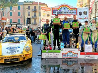 Secondi assoluti , primi del 2° raggruppamento e vincitori finali del trofeo Memory Fornaca Marco Bertinotti navigato dalla moglie Barbara Ravelli a bordo della loro Porsche 911 salgono sul podio dopo aver vinto una prova speciale ed essere rimasti sempre sulla scia del vincitore Filippo Gerini sulla Subaru Legacy a trazione integrale.