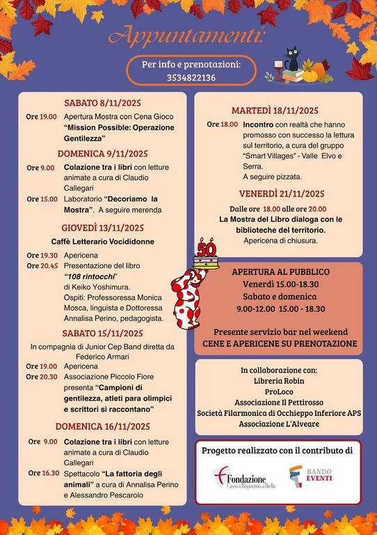 Prosegue nel fine settimana la Mostra del Libro ad Occhieppo Inferiore. Sabato 15 novembre alle 19 ci sarà l'Apericena quindi alle 20,30 l'Associazione Piccolo Fiore presenta "Campioni di gentilezza, atleti para olimpici e scrittori si raccontano".