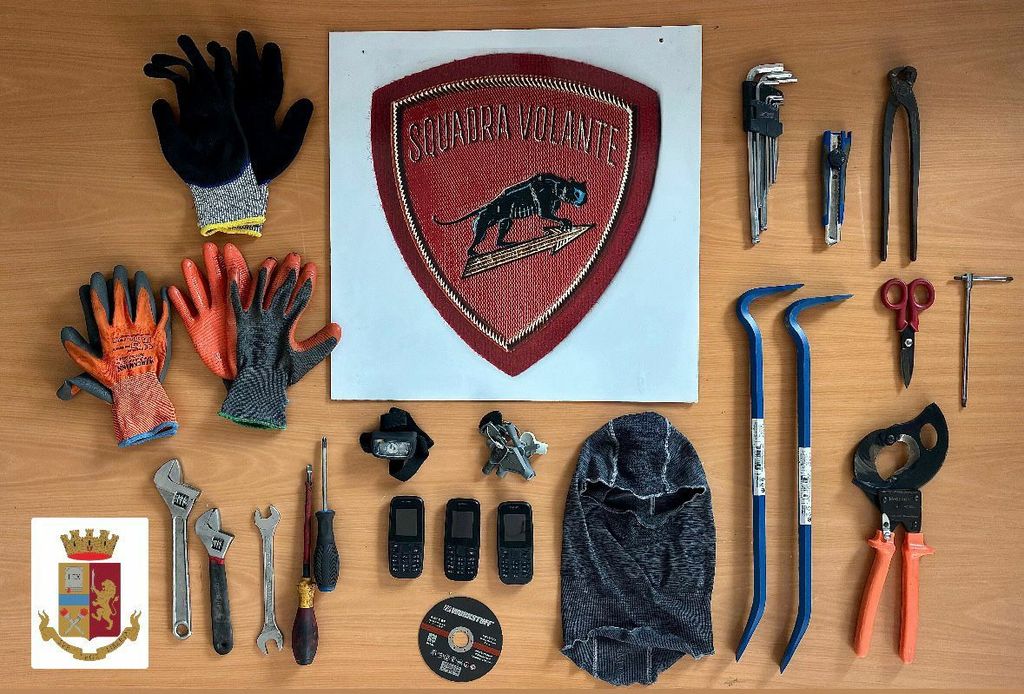 Gli uomini, incapaci di fornire una spiegazione credibile sulla loro presenza in città e insofferenti al controllo, sono stati sottoposti a perquisizione personale e del veicolo. All’interno dell’auto gli agenti hanno rinvenuto circa 2.500 euro in contanti e una serie di strumenti utilizzabili per commettere furti, tra cui: scala, cacciaviti di varie dimensioni, chiavi inglesi, tronchese, chiavi esagonali, tagliacavi, passamontagna, torce elettriche, guanti e telefoni di vecchia generazione non localizzabili.
