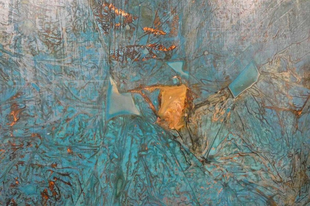 Tra le opere esposte figurano lastre come Patagon-Ocean Scapes, Anatomy of Movement, Cyperus Papyrus e Vitis Vinifera, superfici in continua evoluzione in cui incisioni e reazioni chimiche richiamano forme vegetali, paesaggi e movimenti del corpo. Il percorso comprende anche alcune fotografie e una scultura in marmo, che ampliano la riflessione sul rapporto tra percezione, materia e mondo naturale.