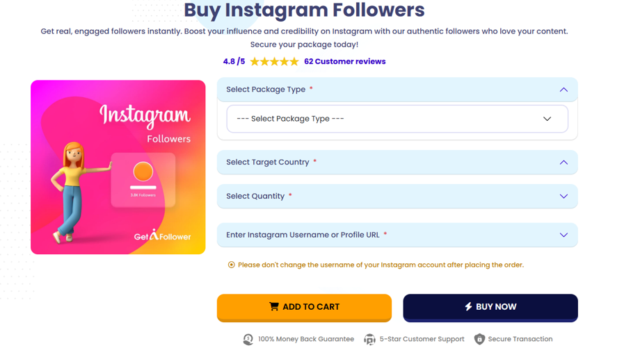 2. GetAFollower – Miglior sito per comprare follower Instagram a prezzi accessibili