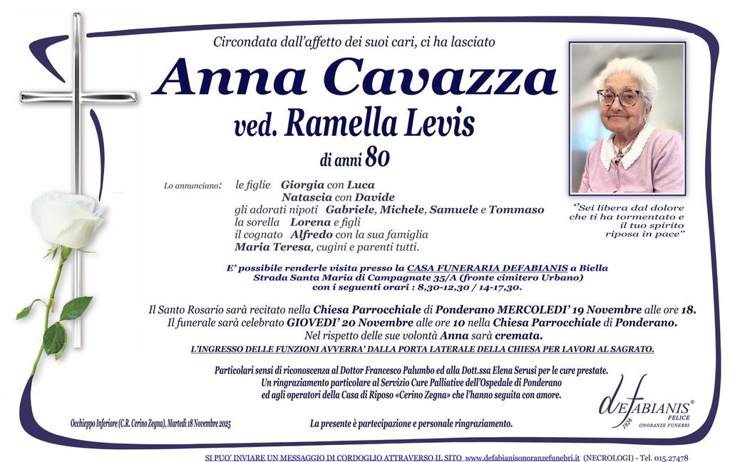 Anna Cavazza, ved. Ramella Levis
