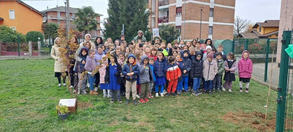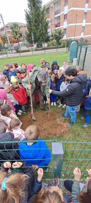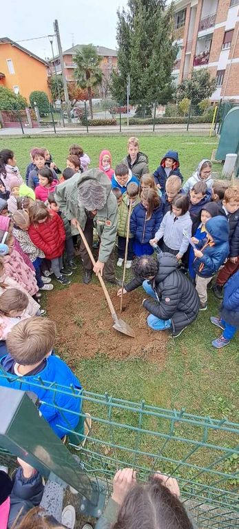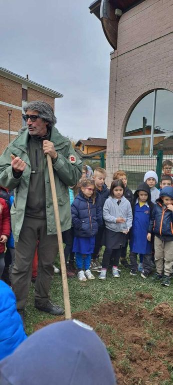 Al termine di questo momento più interlocutorio il gruppo si è spostato in giardino per assistere alla piantumazione di un acero. I bambini della classe prima hanno cantato la canzoncina " Io sono un albero" e la festa si è conclusa con una bella foto, scattata in ricordo della giornata.