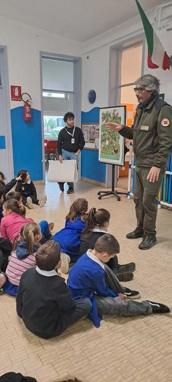 La festa è iniziata con un momento di confronto tra gli alunni di tutte le classi con il Guardiaparco che ha spiegato loro l'importanza degli alberi per tutti noi ed il loro ruolo fondamentale sul nostro pianeta.