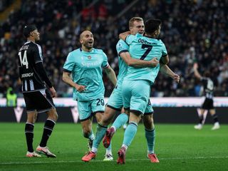 UDINE (ITALPRESS) - Il Bologna continua a sognare a occhi aperti. I ragazzi di Vincenzo Italiano espugnano il Bluenergy Stadium, vincendo 3-0 contro l'Udinese. Dopo il rigore fallito da Orsolini, la doppietta di Pobega e il gol di Bernardeschi valgono il terzo successo consecutivo degli emiliani, che volano in vetta alla classifica della Serie A, in attesa delle altre gare, a pari punti con Inter e Roma.Dopo appena 4' i padroni di casa si ritagliano la prima occasione con Davis che, su suggerimento di Kamara, tenta la conclusione sfiorando un gran gol. Archiviato lo spavento, la squadra rossoblù prova a prendere in mano le redini della sfida, ma non riesce a trovare sbocchi sul fronte offensivo. Orsolini al 24' si accentra e prova la conclusione da lontano, ma sbaglia completamente la traiettoria. Al 36' Pobega tenta il tiro da fuori, ma trova la deviazione con un braccio di Ehizibue: dopo un lungo controllo del Var, l'arbitro Sacchi decide di assegnare un calcio di rigore ai felsinei. Sul dischetto si presenta Orsolini, che però si fa ipnotizzare da uno straordinario Okoye, bravo a respingere la conclusione dell'attaccante avversario. In pieno recupero l'ex giocatore dell'Ascoli va a segno, ma il suo gol viene annullato per fuorigioco. Si va, dunque, a riposo sul parziale di 0-0.Nella ripresa il Bologna torna in campo con il piglio giusto e al 54' trova la rete del vantaggio con Tommaso Pobega: il centrocampista riceve palla da Orsolini, si accentra e con il destro batte Okoye. L'Udinese accusa il colpo e al 60' combina un pasticcio difensivo con Okoye e Karlstrom, che regalano a Pobega il pallone che vale il 2-0 e la sua doppietta personale: l'ex Milan ruba palla allo svedese e supera agevolmente il portiere avversario. Mister Runjaic decide di stravolgere la sua squadra, effettuando tutte le cinque sostituzioni nell'arco di pochi minuti, ma le sue mosse non sortiscono i risultati sperati. A sfiorare il gol, infatti, sono ancora gli ospiti con Fabbian, che al 70' si divora il tris sprecando una bella giocata di Zortea. Nel finale i bianconeri cercano in maniera velleitaria di riaprire la contesa, ma gli emiliani si difendono bene e, dopo un malinteso tra Bertola e Zanoli, chiudono definitivamente i giochi con il primo gol in rossoblù di Federico Bernardeschi. Festa in casa Bologna; domande e dubbi sul fronte friulano.- foto Image -(ITALPRESS).