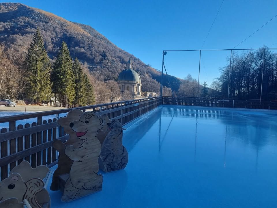 Grazie alla fantastica posizione nella Conca d'Oropa con la vista sulla cupola della Basilica Nuova da una parte e sui monti Rosso e Camino dall'altra, la pista di ghiaccio di Oropa è senza dubbio una delle più spettacolari in cui pattinare. I costi sono decisamente contenuti: 6 euro per l'accesso in pista tutto il giorno. Il noleggio pattini, per chi non ha i propri, è di 4 euro sempre a giornata. La pista è completamente ecosostenibile, il ghiaccio è naturale, l’acqua utilizzata proviene dalla montagna e viene rilasciata nello stesso posto al disgelo, non si consuma energia per la sua realizzazione e manutenzione, inoltre è decisamente diverso da quello artificiale: molto più scorrevole e trasparente.