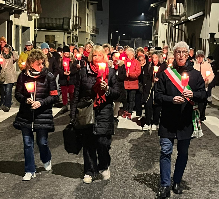 Grande partecipazione a Coggiola per la fiaccolata contro la violenza sulle donne. È l'iniziativa messa in campo dall'amministrazione comunale dal titolo “Camminata in Rosso”, inserita negli appuntamenti per la giornata del 25 novembre. Il corteo, partito ieri sera dalla panchina rossa del Municipio, ha percorso in silenzio tutta via Roma ed è poi giunto di fronte al palazzo della Biblioteca, illuminato di rosso per l'occasione.