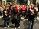 Sulla strada sono state posate diverse scarpe rosse a ricordo di tutte le vittime di violenza.
