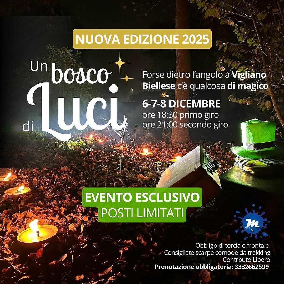 A grande richiesta, torna anche nel 2025 “Un Bosco di Luci”, l’evento suggestivo firmato Il Macchie – Marco Macchieraldo, capace negli anni di trasformare il bosco in un percorso incantato, illuminato da centinaia di punti luce. Un’esperienza che unisce atmosfera, natura e immaginazione, pensata per coinvolgere adulti e bambini.