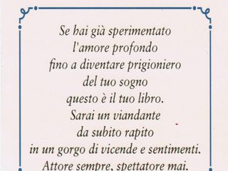 La vicenda corre pagina dopo pagina come un treno ad alta velocità e il lettore ne è rapito, quasi soggiogato. Al tempo stesso però dentro di lui si agitano i sentimenti più contrastanti: vorrebbe rispondere attingendo alla sua stessa vita come alle pagine del romanzo, vorrebbe anche parlare con i protagonisti pur sapendo che spesso è davvero difficile dare consigli in una storia d'amore.
