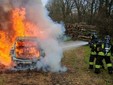 Vigili del Fuoco in azione nel comune di Villareggia, in strada del Rotto, per l’incendio di un’autovettura nella campagne.