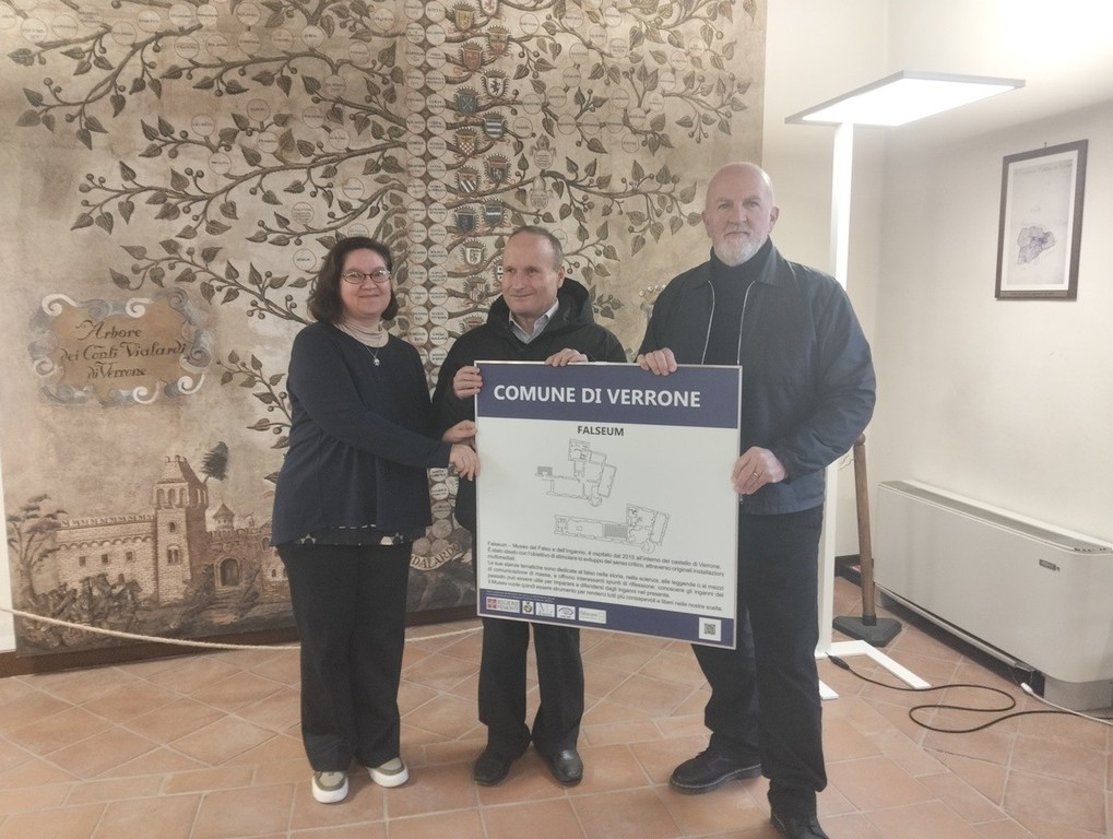Il comune di Verrone, primo nella Provincia di Biella, ha ricevuto il suo pannello tattile multimediale che consentirà, anche ai non vedenti, di percepire le forme e la descrizione di un sito di interesse artistico-culturale del territorio: E precisamente a riceverlo è stato Il "Falseum", Museo del Falso e dell'Inganno. Il manufatto è stato ufficialmente consegnato mercoledì 3 dicembre, in occasione della Giornata Internazionale della Disabilità, al sindaco Gianluca Bazan.