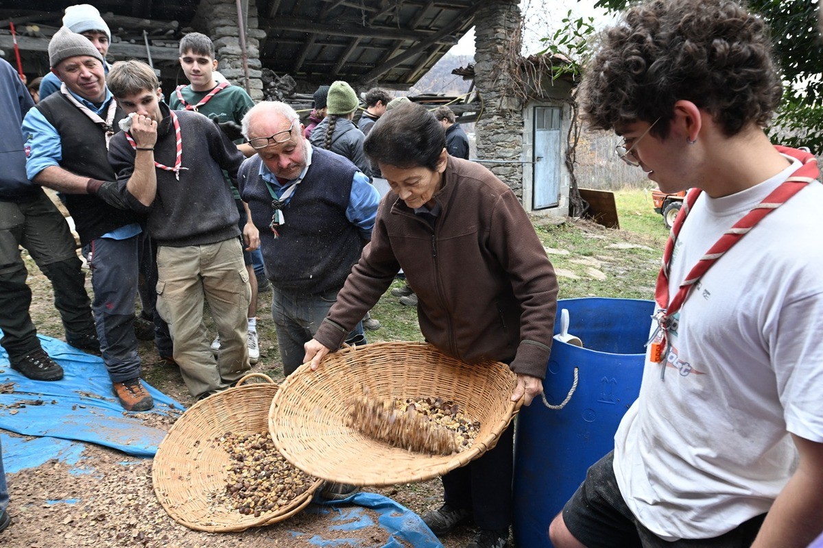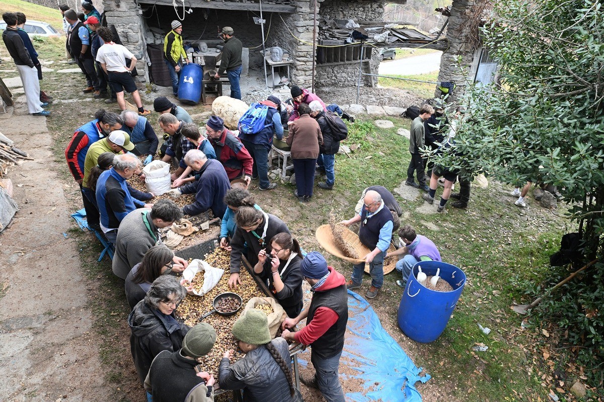 A Bagneri la battitura delle castagne è tornata a riunire la comunità. Domenica 7 dicembre l’iniziativa si è svolta per la prima volta a Cascina Nisina, la baita acquistata dagli Amici di Bagneri per restituirle una funzione sociale e mantenere in vita tradizioni che qui fanno parte del paesaggio quanto i boschi che circondano il borgo.