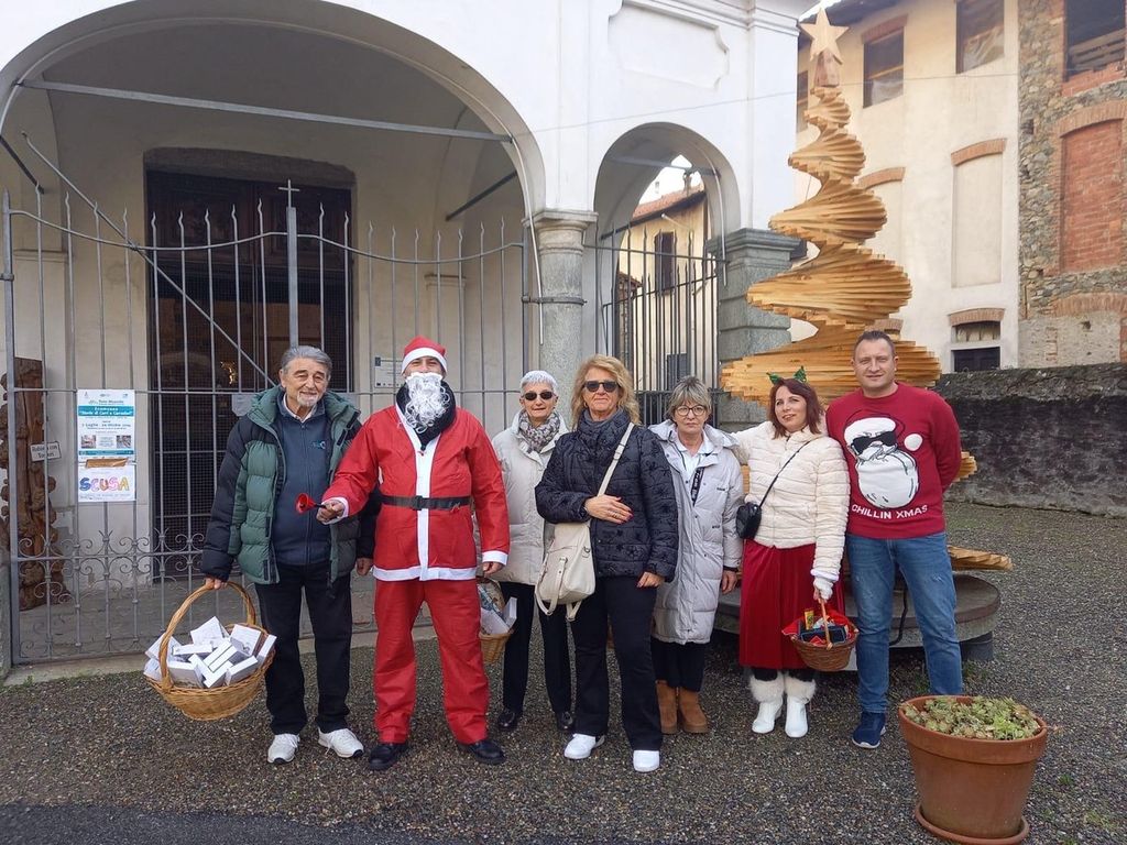 Al termine della funzione, il sindaco Piergiorgio Givonetti e gli amministratori comunali, assieme a Babbo Natale, hanno fatto il giro del paese per fare gli auguri e distribuire gli omaggi ai più anziani impossibilitati a prendere parte al convivio, oltre a distribuire caramelle ai bambini che si incontravano per strada.