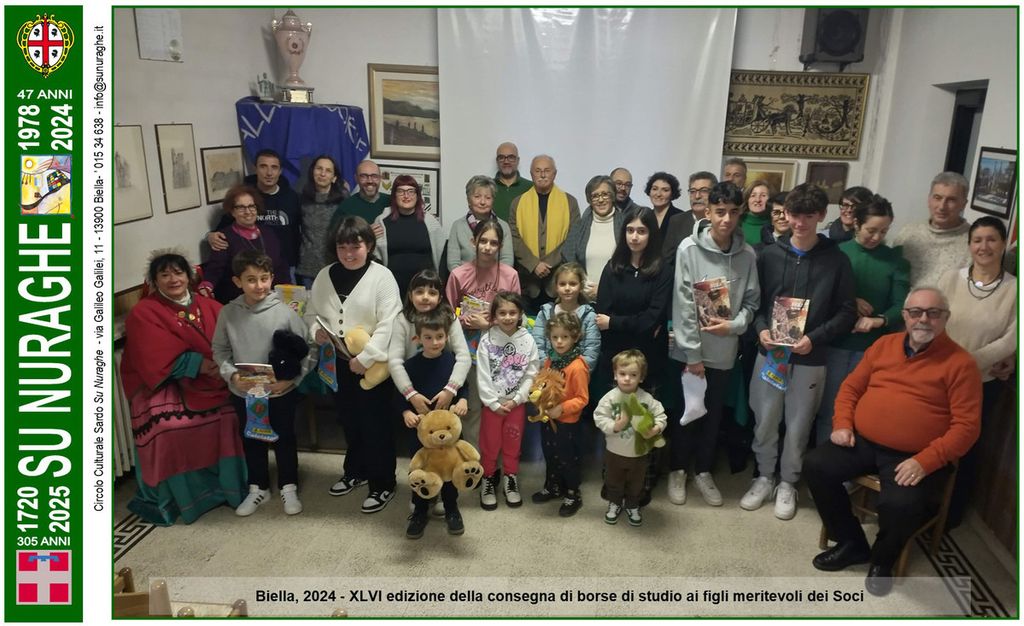 Fin dal 1978, anno della sua fondazione, il Circolo Culturale Sardo Su Nuraghe premia i suoi figli migliori, assegnando loro borse di studio per meriti scolastici. Pagelle e attestai, consegnati entro Dicembre per la Festa degli Auguri, vengono valutati da apposita commissione.