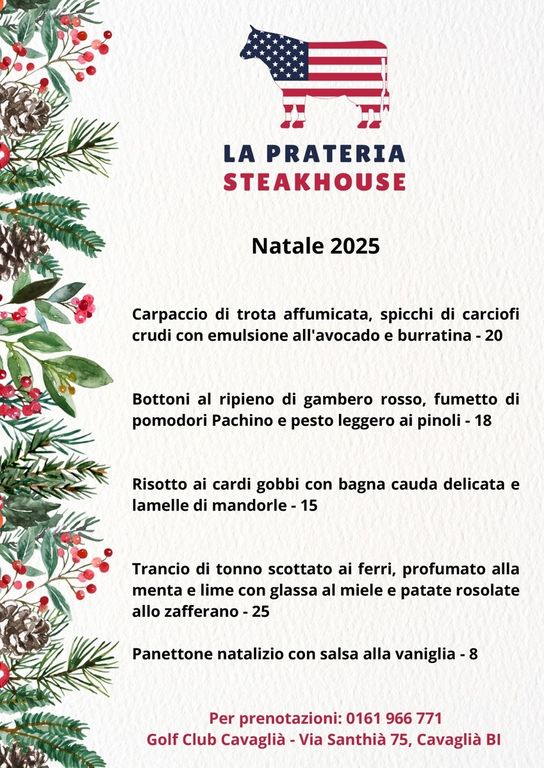 A Cavaglià il Natale ha il sapore della convivialità e della buona cucina. La Prateria Steakhouse celebra le festività con un menù di Natale pensato per esaltare la qualità delle materie prime, la passione per la carne e il piacere di stare insieme a tavola.