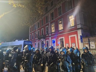 Ore 19.25 – Momenti di forte tensione alla partenza del corteo. I manifestanti hanno tentato di rientrare nell’edificio e sono stati respinti dal cordone di sicurezza delle forze di polizia, che ha fatto ricorso anche all’idrante per riportare la situazione sotto controllo.