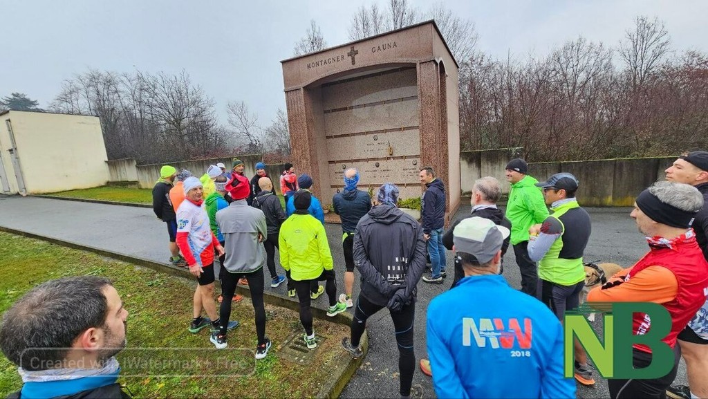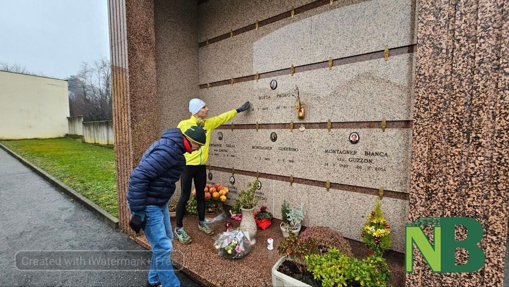 Subito dopo la partenza, la "sgambata" ha previsto una sosta solenne al cimitero di Piatto: sono stati deposti dei fiori e ogni runner ha potuto dedicare un pensiero personale e un momento di raccoglimento alla figura di Paolo.