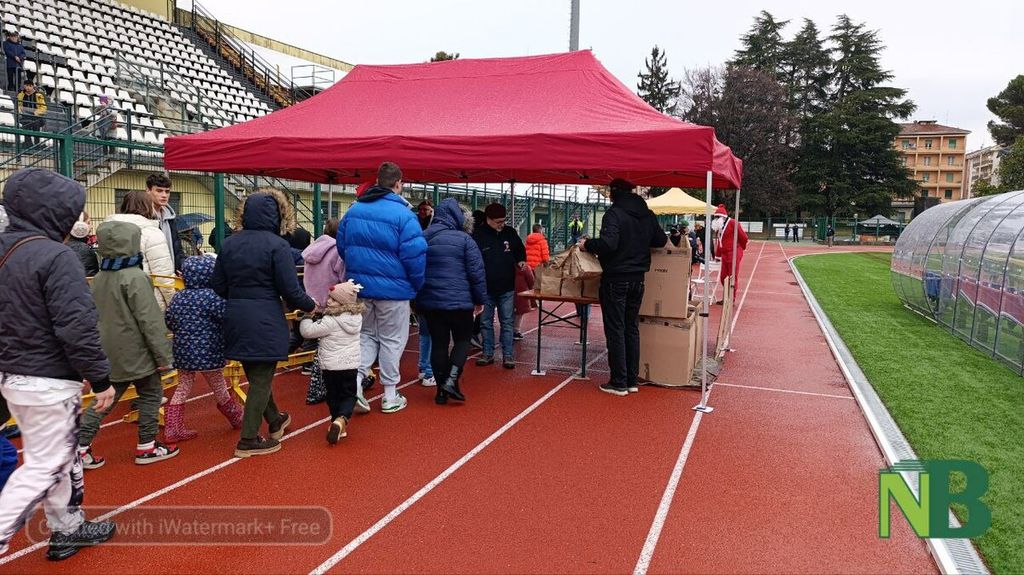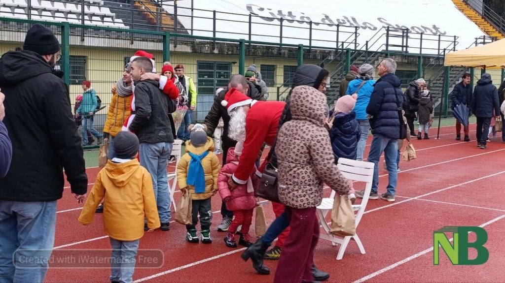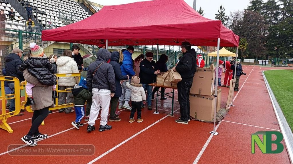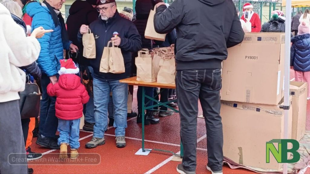 Babbo Natale Paracadutista a Biella: niente lancio dal cielo, ma regali ai bambini , FOTO Mattia Baù per newsbiella.it