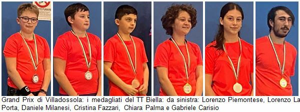 A Villadossola si è disputata la terza prova del Grand Prix. Presenti undici giovani atleti del TT Biella. In evidenza Lorenzo Piemontese, finalista under 11, e Lorenzo La Porta, finalista under 13. Ottima semifinale per Daniele Milanesi nell’under 15 e vittoria a sorpresa per Gabriele Carisio, che si è aggiudicato la gara under 19-21.