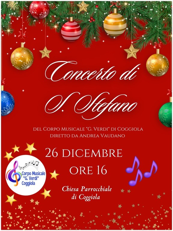 Il Corpo Musicale G. Verdi di Coggiola, diretto da Andrea Vaudano, invita la cittadinanza a partecipare al Concerto di Santo Stefano.