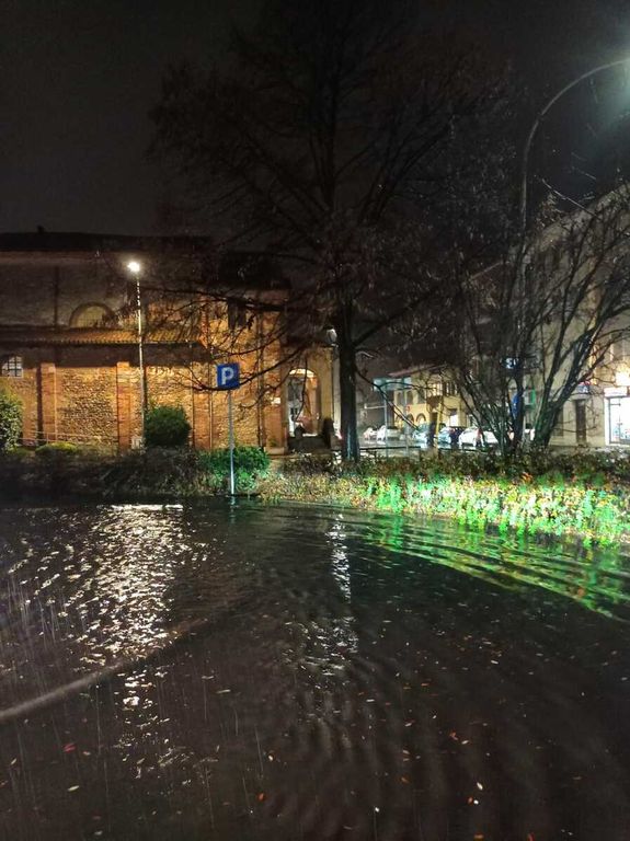 La pioggia caduta oggi mercoledì 24 dicembre ha provocato allagamenti in alcune zone della città. Intorno alle 18.30, il parcheggio situato tra via Rosselli e via Delleani, a fianco alla chiesa di San Biagio, risulta completamente allagato, creando disagi per automobilisti e pedoni.
