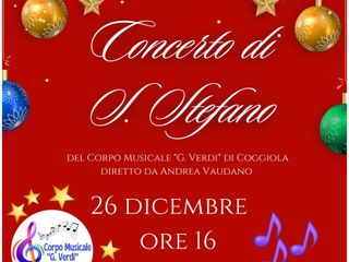 Il Corpo Musicale G. Verdi di Coggiola, diretto da Andrea Vaudano, invita la cittadinanza a partecipare al Concerto di Santo Stefano.