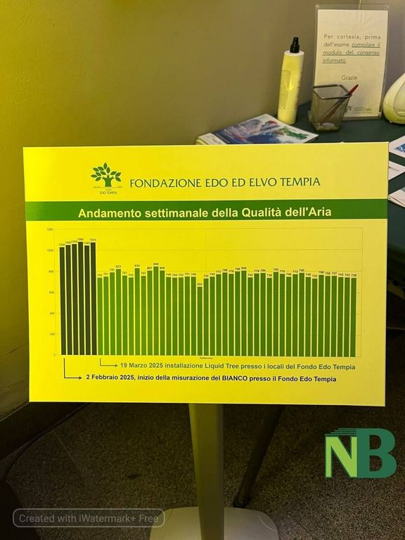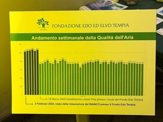 Il dispositivo installato nella sede del Fondo Edo Tempia, in via Malta a Biella, equivale all’azione di tre querce adulte in ambiente chiuso. I dati raccolti dal mese di marzo indicano un miglioramento della qualità dell’aria pari al 30% e, grazie ad un efficientamento di circolazione dell’aria, una riduzione del radon di circa il 4%. Un risultato rilevante in termini di tutela della salute.