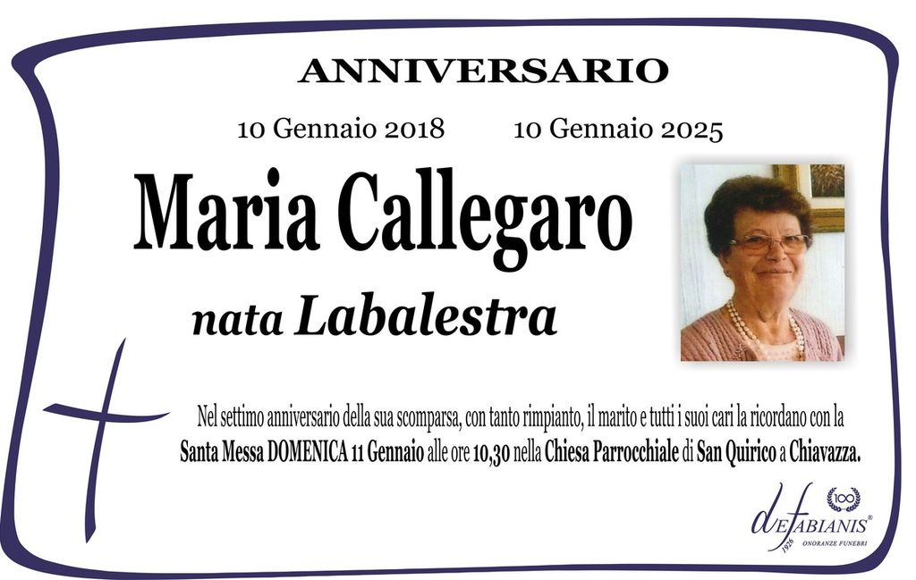 Maria Callegaro, nata Labalestra - Anniversario