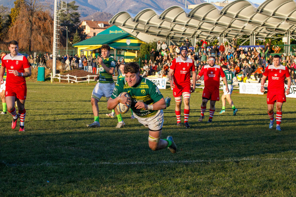 Nella ripresa Biella affronta i primi dieci minuti in inferiorità numerica a causa del giallo rimediato da Eschoyez, Vicenza cambia marcia. La meta di Vunisa al 45’, premiato non a caso come Player of the Match, ristabilisce la parità e apre un secondo tempo ad altissima intensità. Non per Biella. Altre due marcature al 51’ e 57’ spingono gli ospiti avanti fino al 19-31. Biella prova a rimanere agganciata con la seconda meta personale di Foglio Bonda che porta anche all’incasso del primo bonus, quello legato alle quattro mete segnate. Vicenza spinge in avanti centrando sei punti dalla piazzola, ma il finale è incandescente. Meta annullata per Vicenza che da lì al poco perderà anche un giocatore per via di un cartellino giallo. Mancano meno di dieci minuti all’ 80’ e Biella si trova in attacco, vicino alla linea di meta avversaria, in superiorità numerica. Ultimo minuto: Biella lotta duramente lungo la linea. De Biaggio trova lo spazio e centra la quinta meta della giornata che riporta i gialloverdi sotto break. Meta che frutta il secondo bonus alla squadra di capitan De Lise.